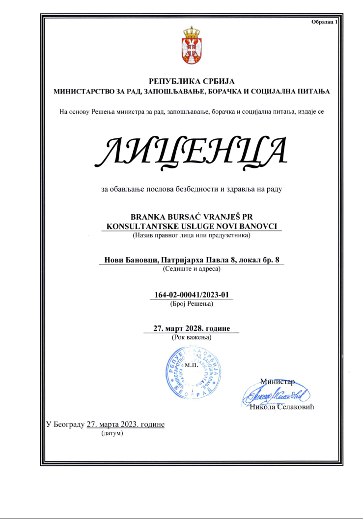 Licenca za obavljanje poslova BIZ na radu